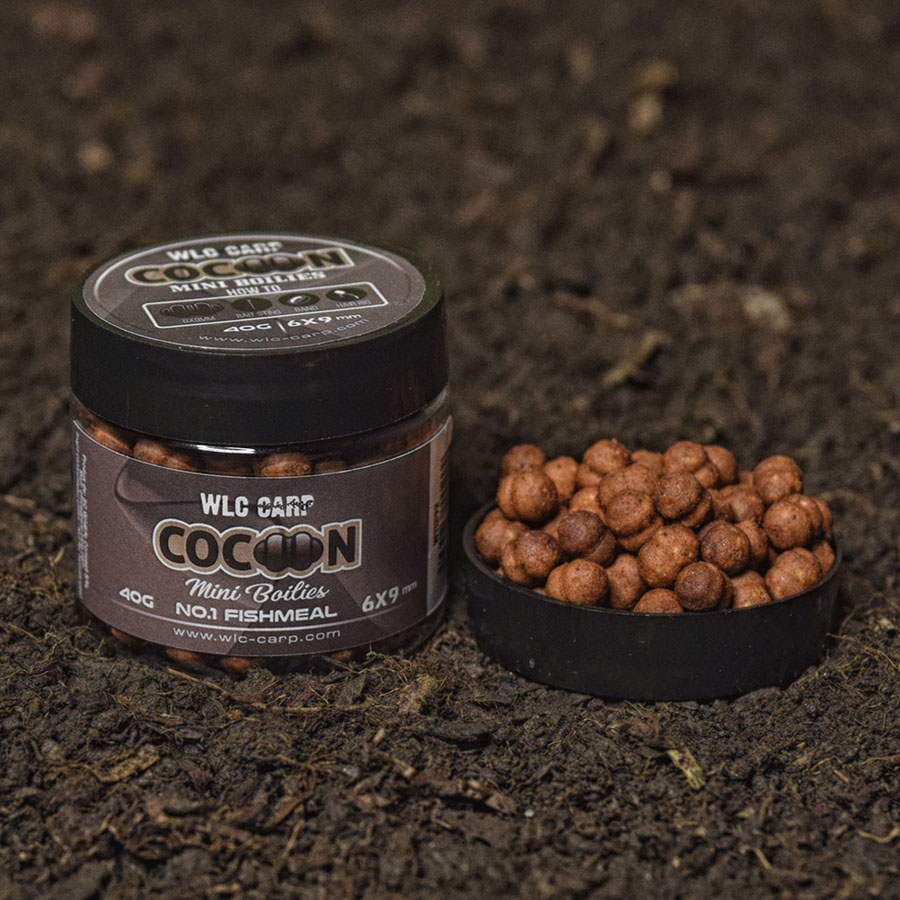 Am dorit ca aceasta gama de Cocoon Mini Boilies sa fie una realizata la niste standard ridicate de calitate. Pentru noi ca pescari asta ingrediente de cea mai buna calitate, atractia si o solubilitate medie pentru a putea fi folosite la prinderea mai multor pesti, aceasi forma & marime in fiecare borcan si aroma persistenta. Dimensiunea unui mini boilies WLC Carp Cocoon No.1 Fishmeal este de 6x9mm.